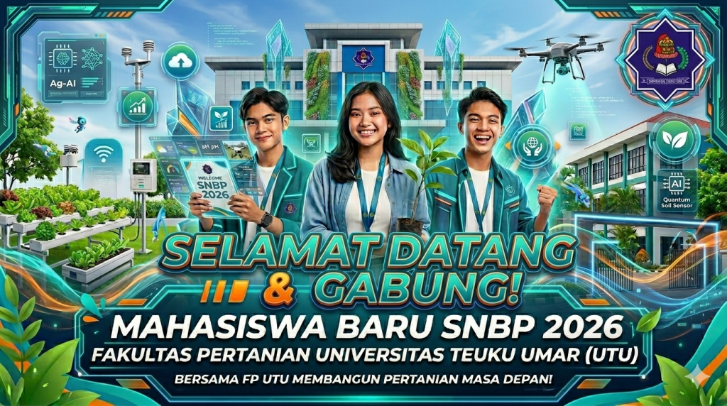 Melalui semangat “bertumbuh, berinovasi, dan berdampak”, Fakultas Pertanian Universitas Teuku Umar mengajak seluruh mahasiswa baru SNBP 2026 untuk memulai perjalanan akademik dengan percaya diri dan visi yang besar. Selamat datang di keluarga besar Fakultas Pertanian UTU. Ini adalah awal dari langkah baru untuk belajar lebih luas, berkarya lebih nyata, dan menjadi generasi yang tidak hanya mengikuti masa depan, tetapi juga ikut menciptakannya.